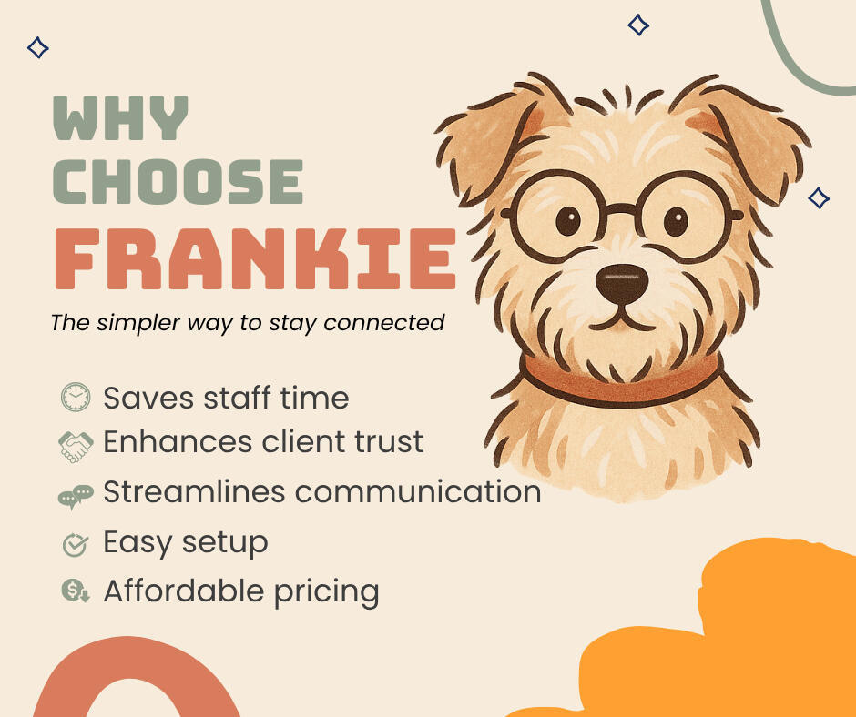 No. Frankie is designed for one-way communication from the clinic to the client. This helps reduce back-and-forth while still keeping clients informed.Can I export or save the chat history?