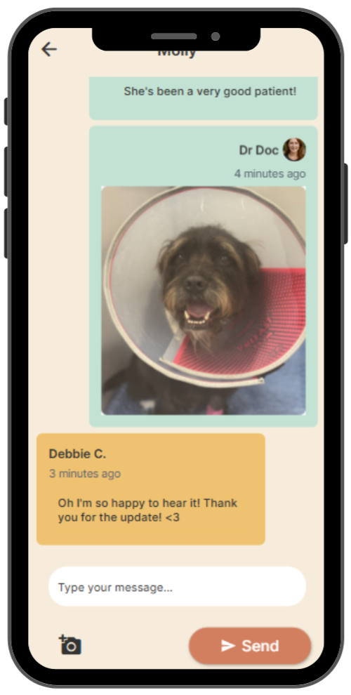 Designed for veterinary hospitals, Frankie is ideal for ER, specialty, and general practice teams looking to streamline communication and improve client experience. With real-time chat, photo sharing, and easy updates, you improve client satisfaction and reduce phone calls.